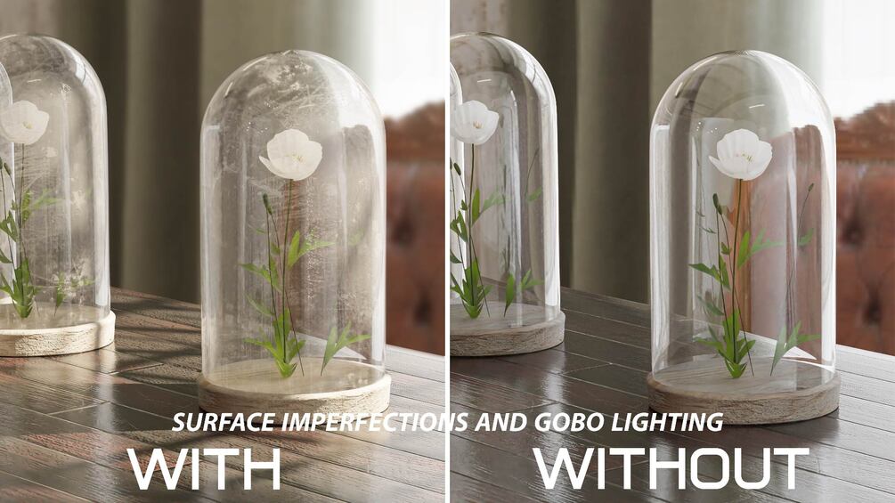 Gobos are like movie projectors. A light source (a spotlight) emits a light with a texture that will serve as a mask. The projected shadows are ultra-realistic and increase the realism of your scenes.